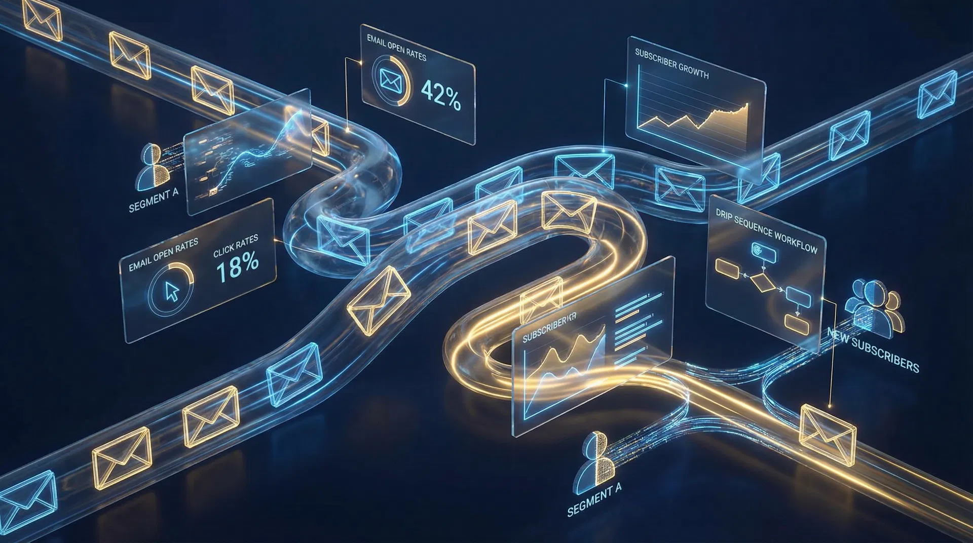 Natural language generation creates compelling subject lines, body copy, and CTAs tailored to your brand voice. Every email is optimized for opens and clicks.